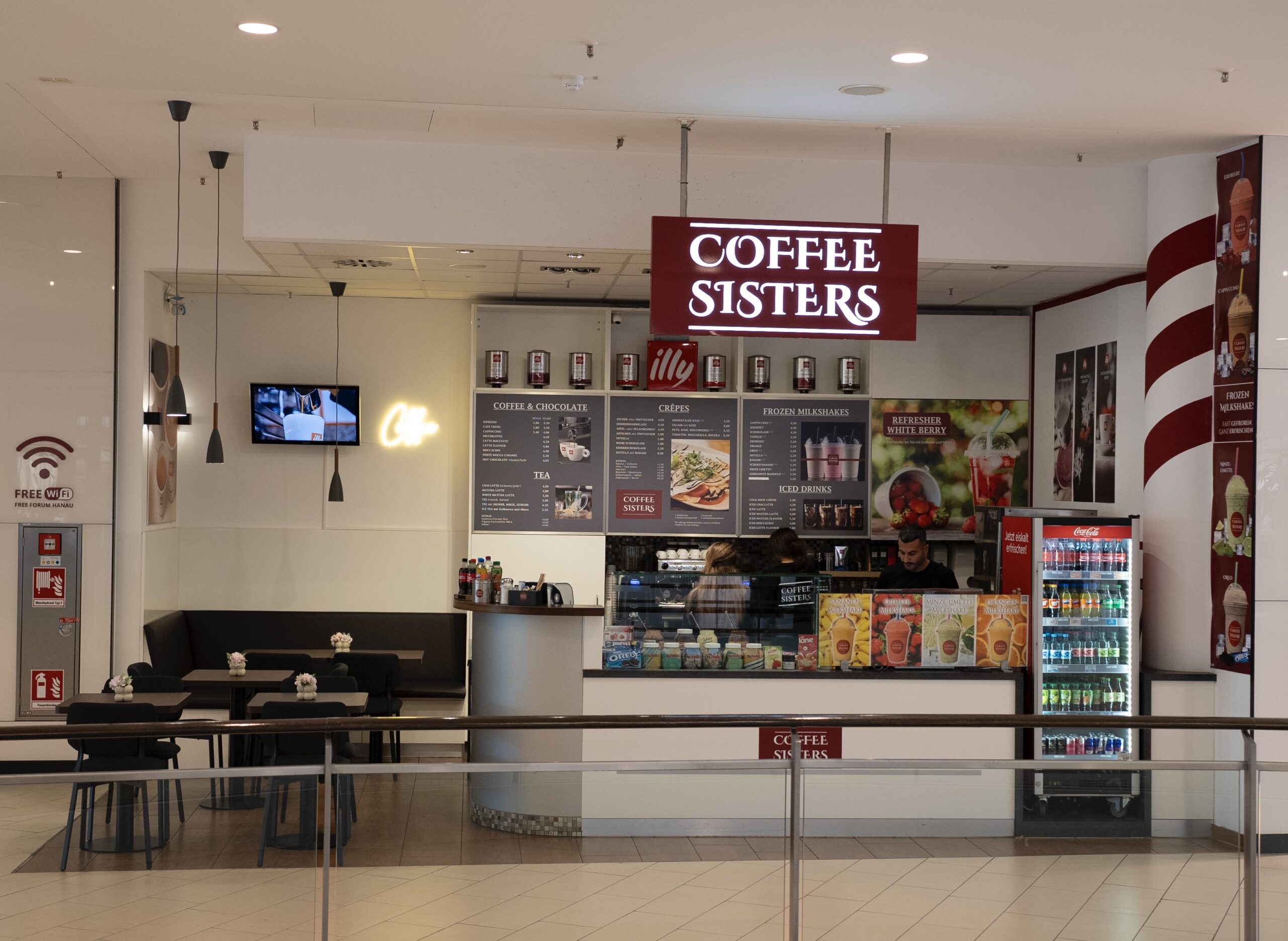 Bei den Coffee Sisters kannst du deine Shoppingpause mit einem ausgezeichneten Kaffee in vollem Umfang genießen. Darüber hinaus erwarten dich unsere einzigartigen, fast gefrorenen Milchshakes, die mit frischen Früchten oder leckeren Toppings gemixt werden. Zu deinem Shoppingerlebnis findest du neben süßen, liebevoll zubereiteten Crêpes auch herzhafte Kreationen. Erlebe den Geschmack der Coffee Sisters im Forum Hanau (EG.)!
